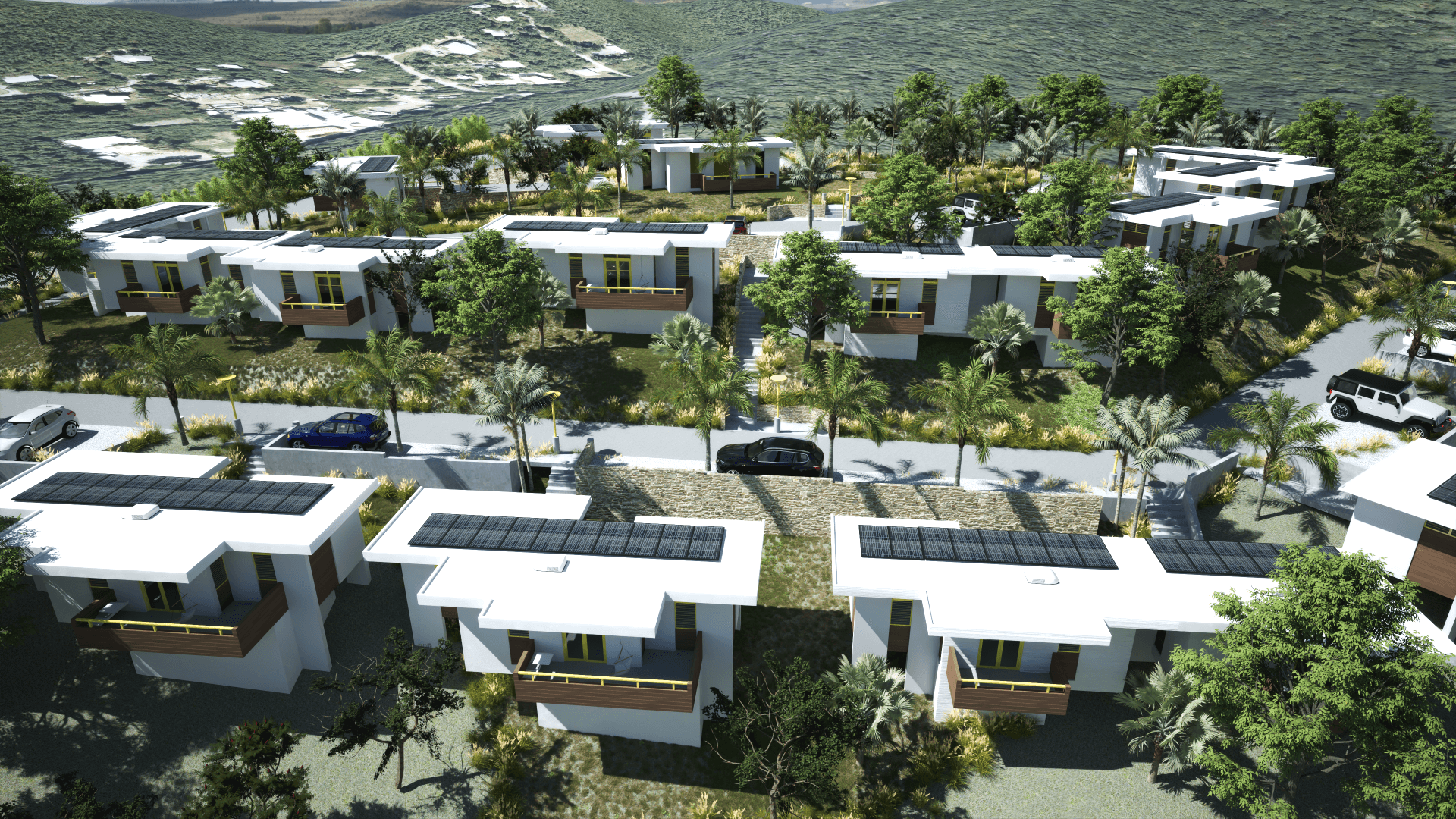 Each unit is designed with integrated infrastructure, including water harvesting, sewage treatment, hurricane protection, and cross-ventilation - eliminating the need for complex retrofits.