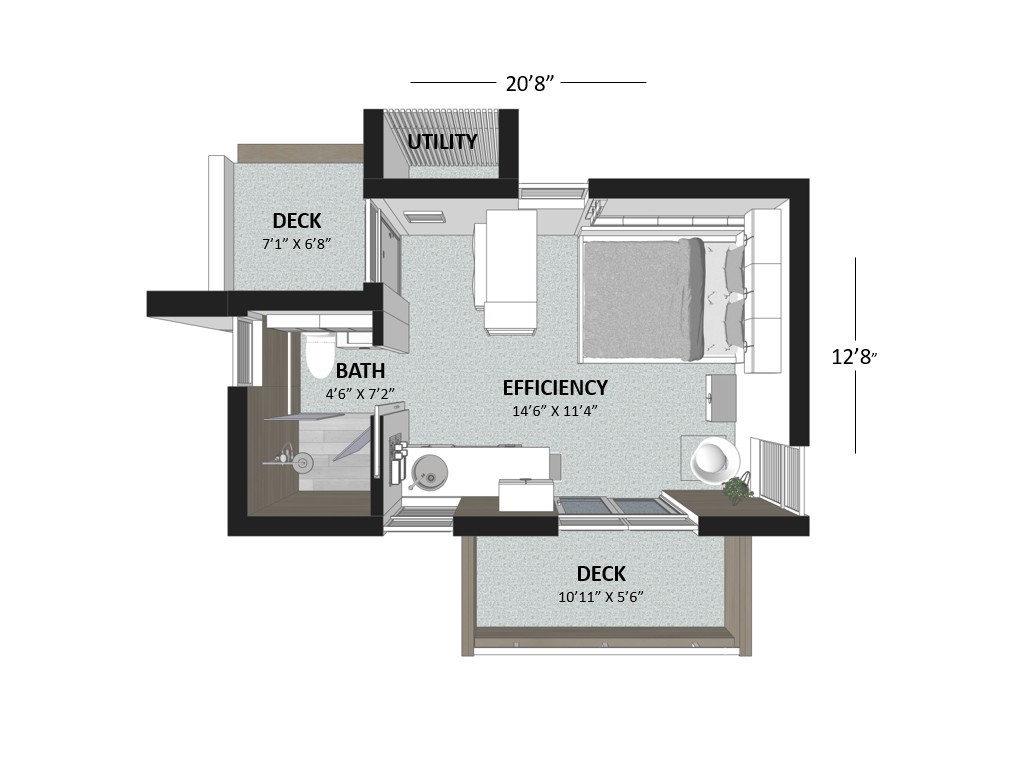 1BR Efficiency | 200 SQFT+ 116 SQFT Deck